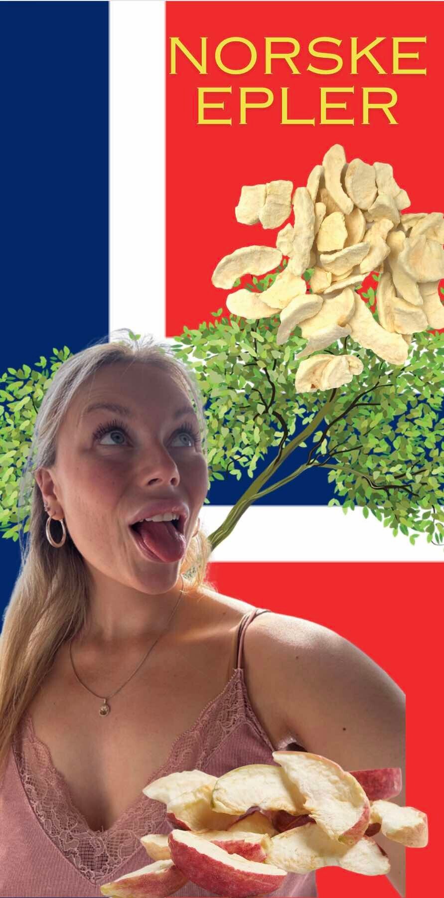 Frysetørket eple er en deilig og næringsrik snack laget ved å fjerne vannet fra ferske epler gjennom en skånsom frysetørkingsprosess. Eplene er dyppet i sitronvann for å unngå at fargen skal brune under frysetørkingsprosessen. Frysetørking bevarer eplenes naturlige smak, farge og næringsstoffer, samtidig som de får en sprø konsistens. Perfekt som en sunn snack, i frokostblandinger, yoghurter eller som en lettvint turmat. Frysetørket eple er uten tilsatt sukker og full av fiber, vitaminer og mineraler, og gir en frisk eplesmak når som helst og hvor som helst!